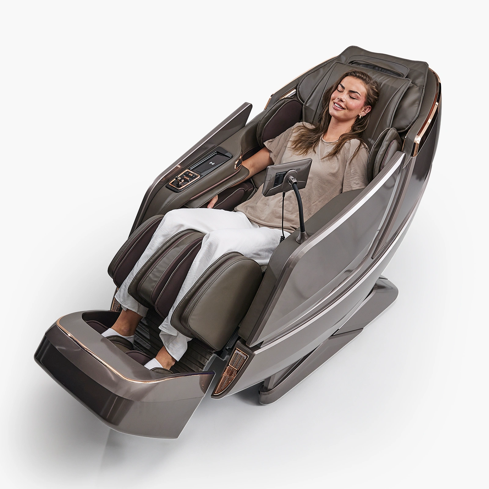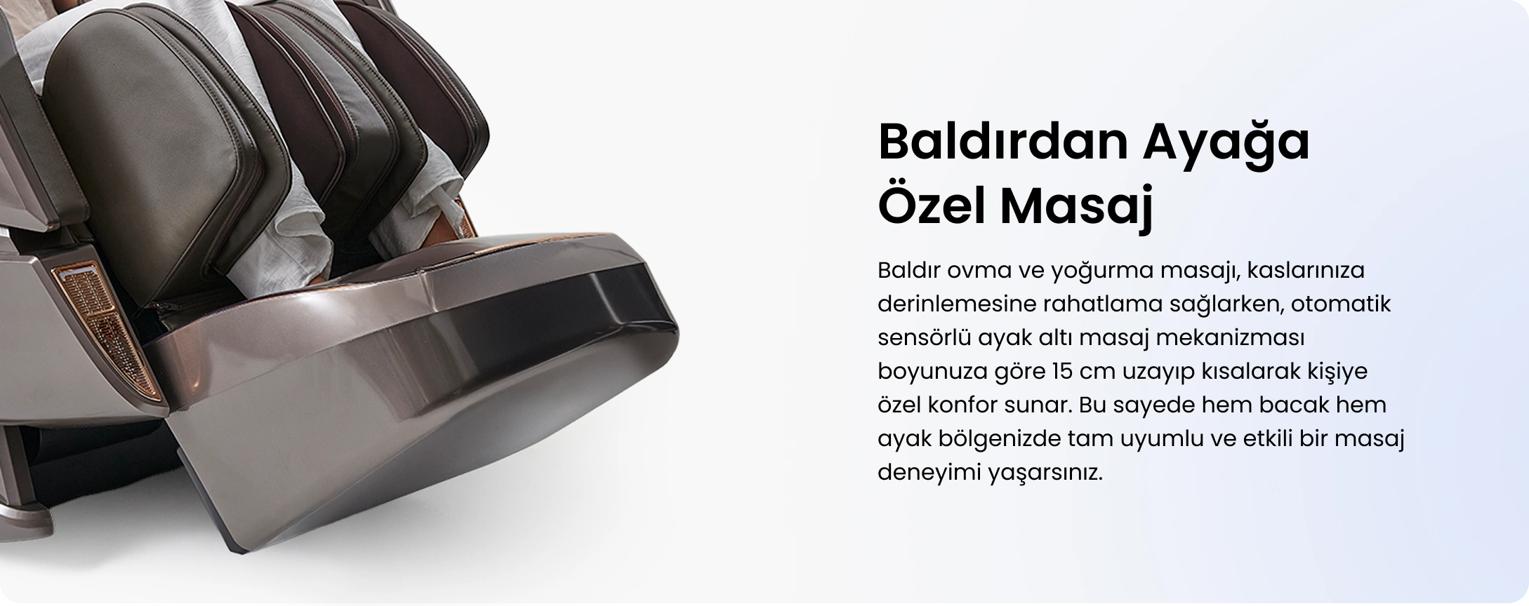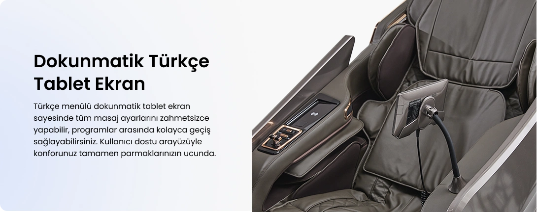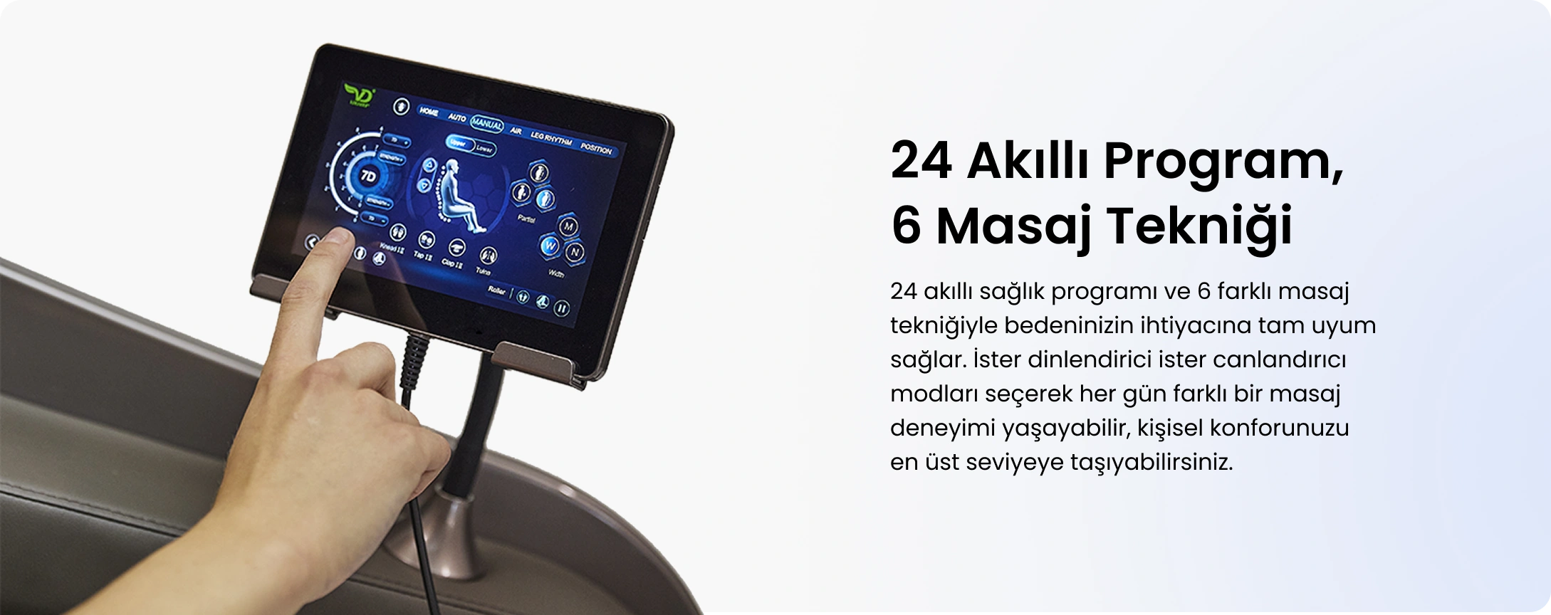 İSABELLA A136 SPECIAL Masaj Koltuğu, 145 cm SL ultra uzun rayı ve çift motorlu 8 başlı 4D manipülatörüyle omuzdan kalça altına kadar ultra profesyonel masaj deneyimi sunar. Akıllı vücut şekli tespiti ve 3 seviyeli sıfır yerçekimi fonksiyonu sayesinde her kullanıcıya özel, üst düzey bir rahatlama sağlar. 24 farklı masaj programı, 6 teknik seçeneği, tay masajı ve esnetme-gerdirme özellikleriyle kaslarınıza derinlemesine etki eder, bel fıtığı riskine karşı destek olur. Ayak altı refleksoloji rolleri, baldır yoğurma ve termal ısıtma özellikleriyle tam vücut masajını tamamlar. Dokunmatik LED ekran, araba tarzı kısayol tuşları, İngilizce sesli komut ve Bluetooth bağlantısı sayesinde hem teknoloji hem de konforu bir arada sunar. Şık LED tasarımı ve kablosuz şarj özelliğiyle A136, ev veya ofisinizde lüks ve fonksiyonel bir masaj deneyimi yaşatır.